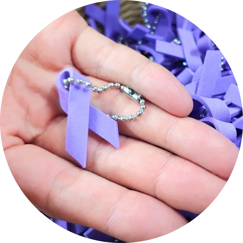 보라리본을 만들 재료(보라색 에바폼, 볼체인, 본드, 가위 등 문구류)와 간단한 식사(김밥)도 준비되어 있으니 편하게 참여하세요.