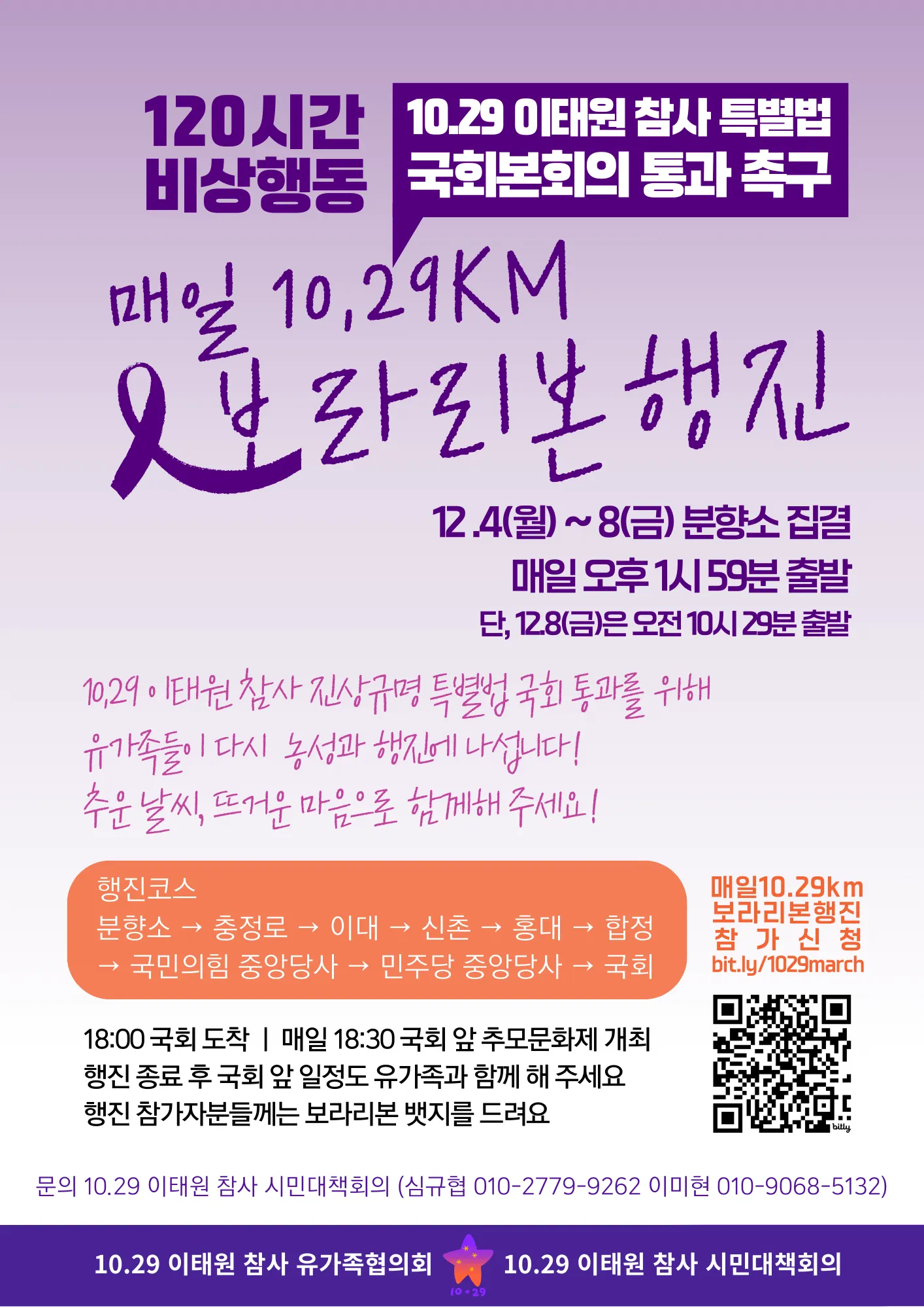10.29 이태원 참사 진상규명 특별법 국회 통과를 위해 유가족들이 다시 농성과 행진에 나섭니다!